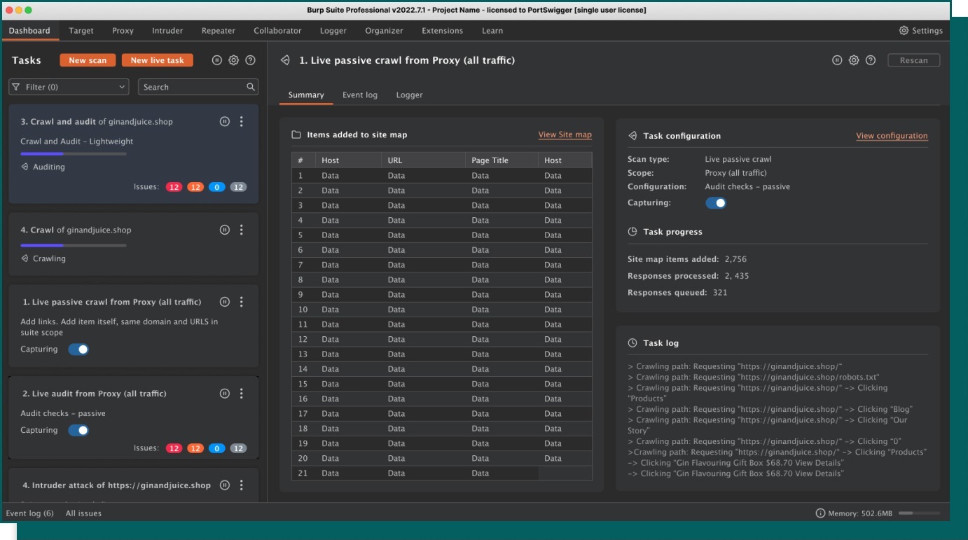 Burp Suite Pro dashboard