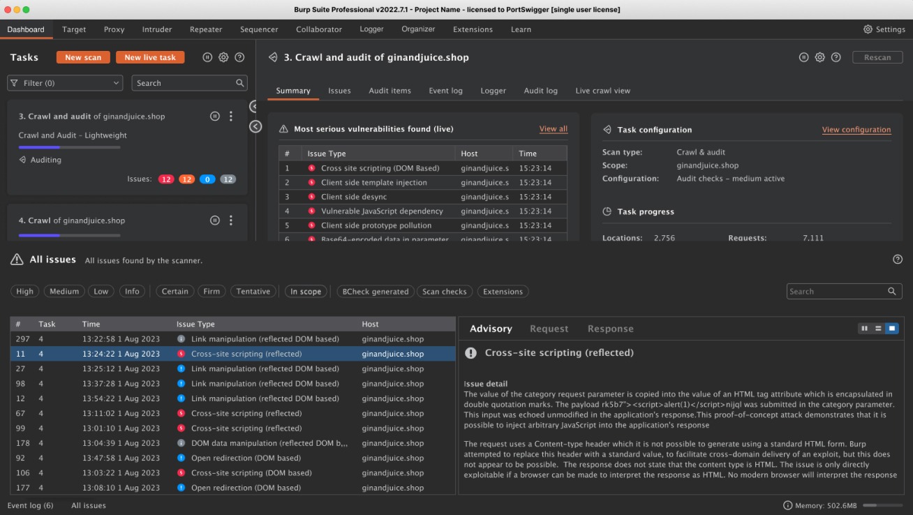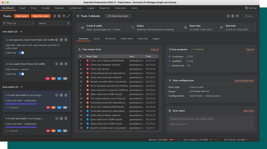 Burp Suite Pro dashboard