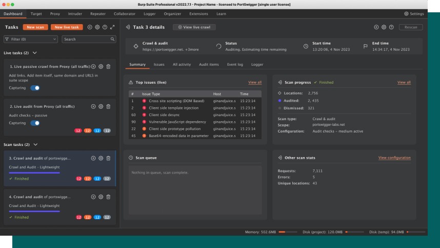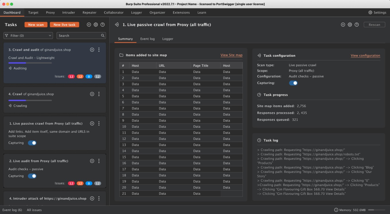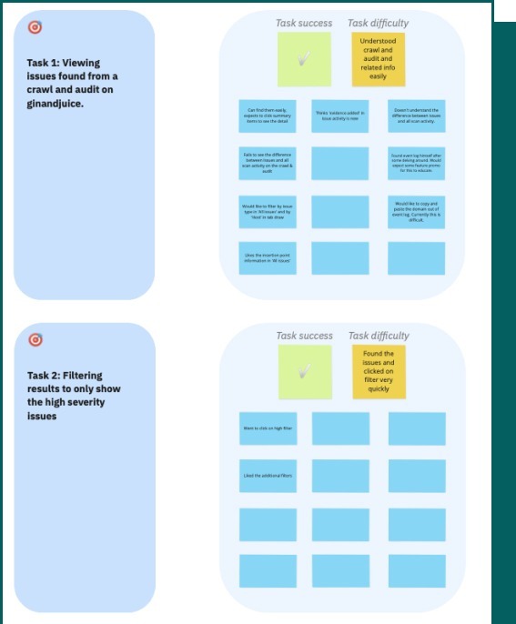 We tested a prototype with five Burp Suite Pro users, the aim of this testing was to see if they could continue to successfully carry out their day to day tasks using the new dashboard, and to gather any additional feedback.