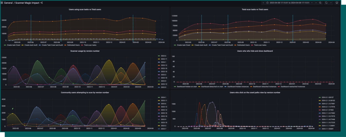 We added telemetry into a lot of the different points of the dashboard this enabled me to create a Grafana dashboard to measure the impact the new dashboard had on number of scans being run.